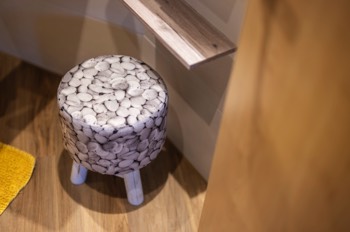 Neues Badezimmer mit Handtuchheizkörper, geräumiger Dusche, Schminkspiegel, kleinem Hocker & jede Menge Aufhängemöglichkeiten